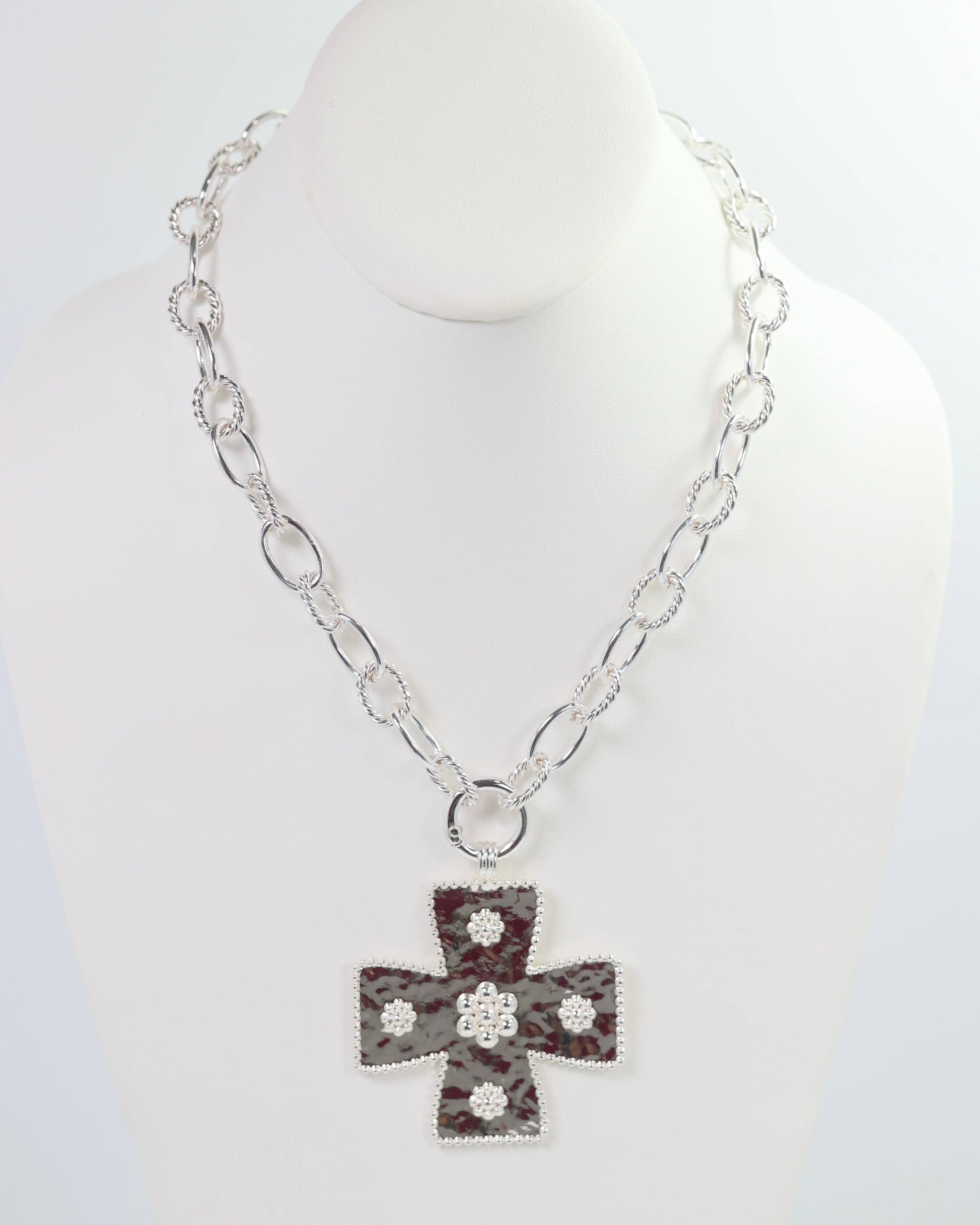 Make a statement with the Carol Large Cross Charm Necklace in Silver! The best part? The charm is removable, giving you versatile style options. Whether dressed up or down, this bold necklace adds a cool edge to any outfit—effortlessly chic and endlessly wearable.