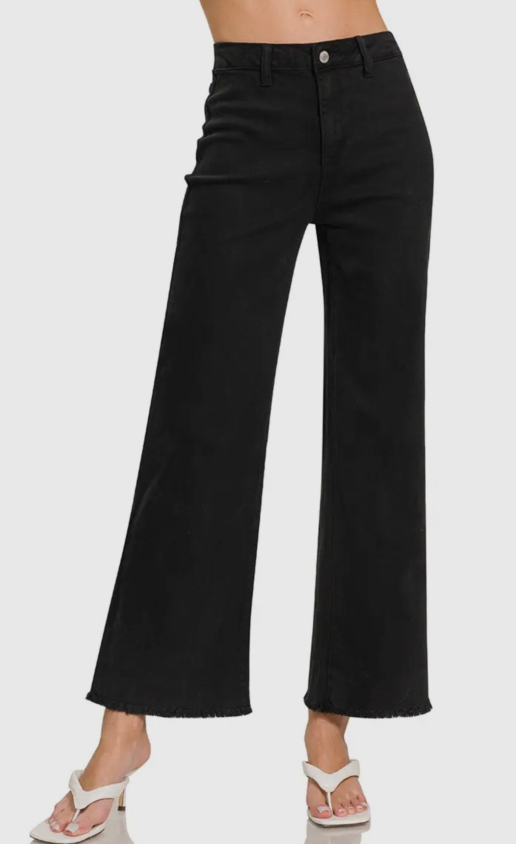 Black -Acid Wash Fray-Hem Color Denim Pants Jeans