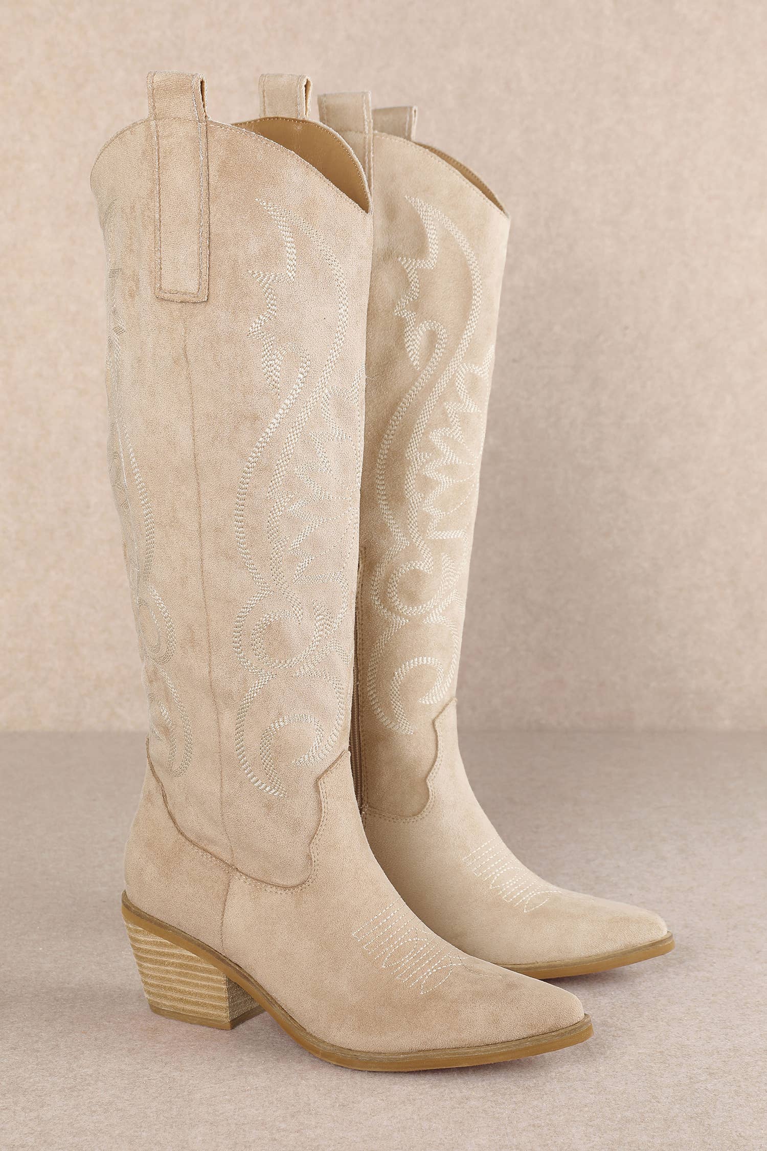 Meet GIADA, your next western statement. Designed with intricate embroidery and a sleek silhouette, these knee-high cowgirl boots add just the right edge to any look. Bold yet refined, they bring effortless confidence to your every step.