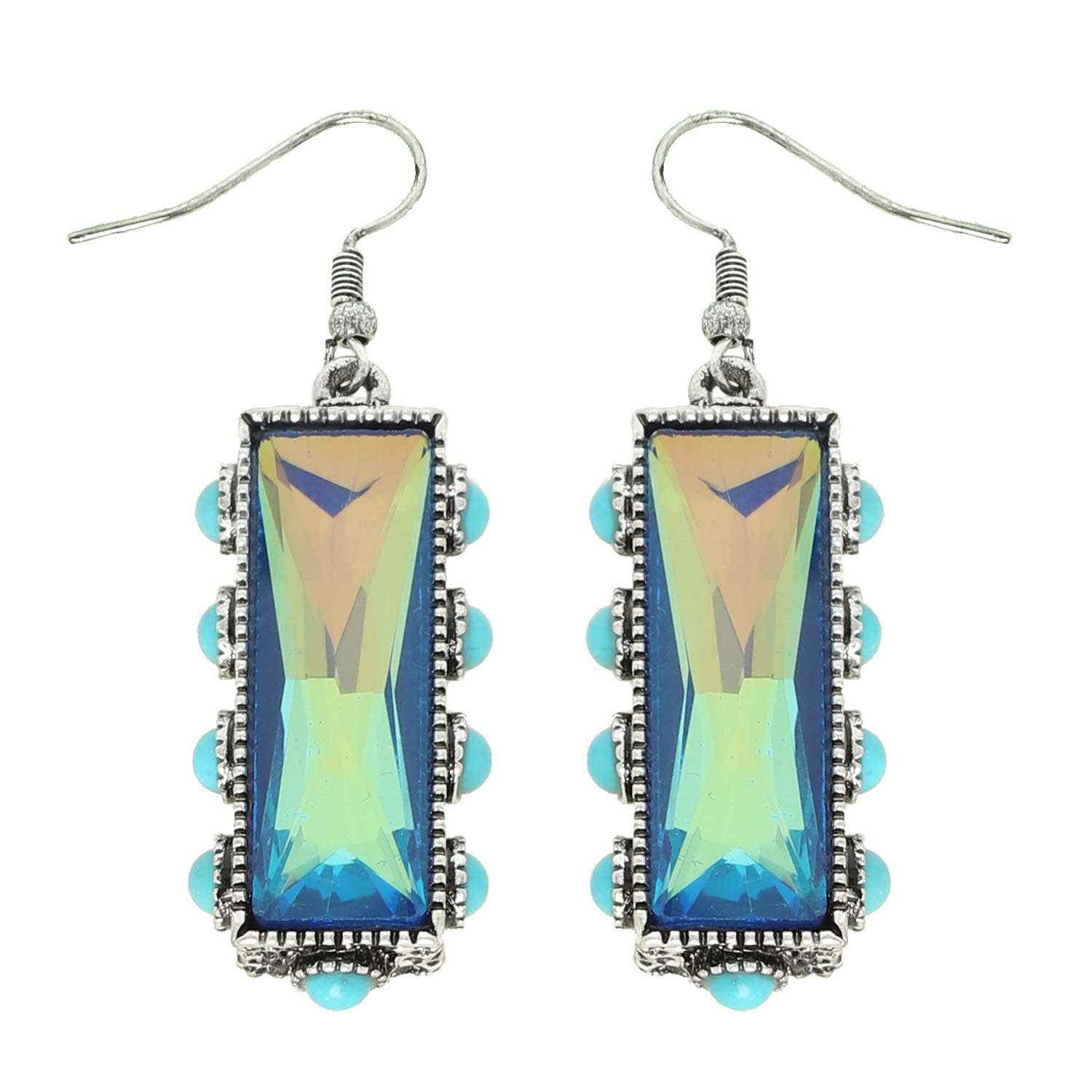 Western Turquoise & Teal Rectangle Gemstone Earrings